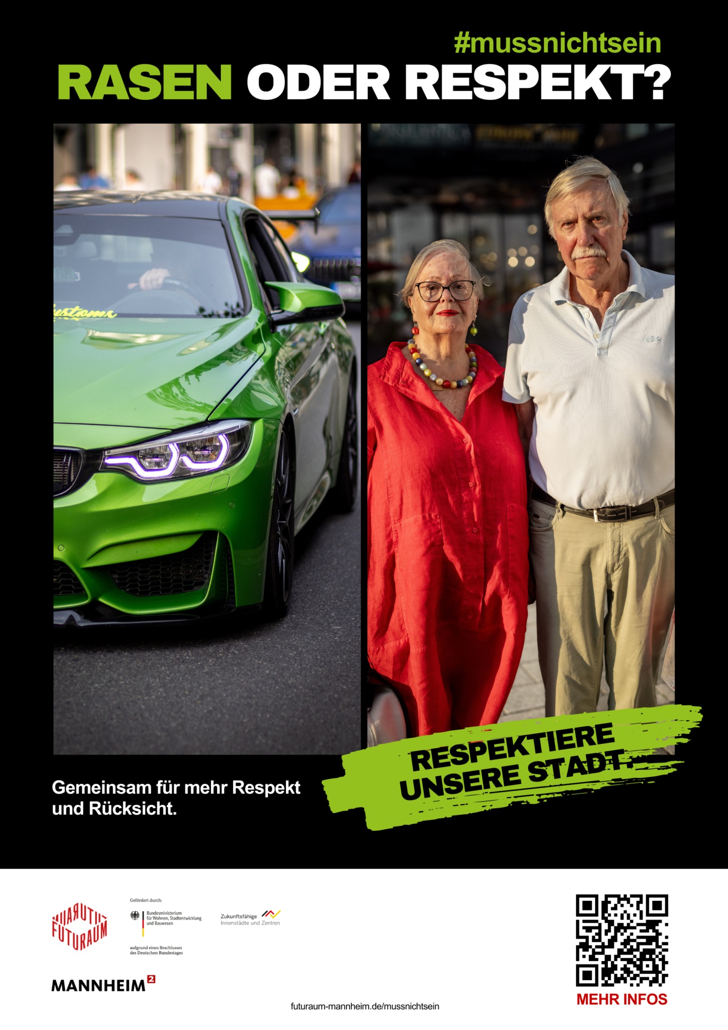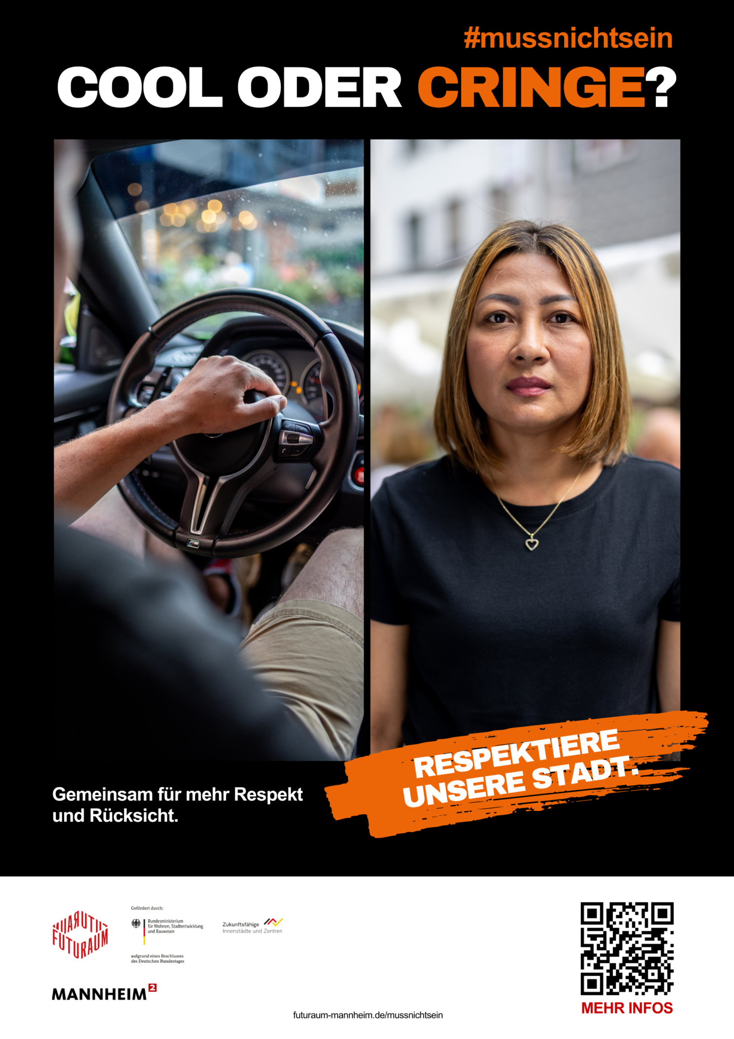Like many cities, Mannheim suffers from the aggressive and reckless behavior of posers and speeders. The campaign appeals directly to the scene and attempts to raise awareness of respectful behavior in road traffic. The special thing about this campaign: People with a wide variety of interests, backgrounds and functions got involved in the same topic together and at eye level. A multi-perspective project that shows how far you can get with dialog and cooperation.